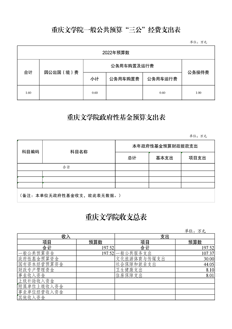 重庆文学院2022年部门预算向社会公开