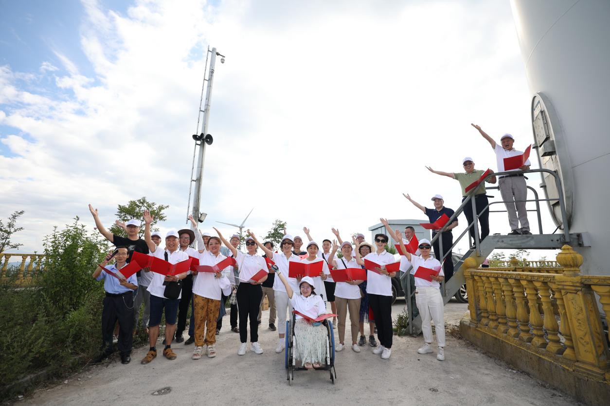 在齐岳山康养生态园内,作家们品香茗,吃水果,观看土家歌舞表演,参加现场互动活动,体验赤日炎夏中南坪的凉爽与惬意。作家们漫步万亩鱼稻共生田,荷花和稻花香交融的美景令人陶醉;登上齐岳山顶,纵览飞云,连绵成行的风力发电机,令作家们大开眼界。作家们感叹乡村振兴的实效与我国实用科技的飞速发展,不断穿行于古与今、虚与实、原始与现代之间,采风佳作随之产生。